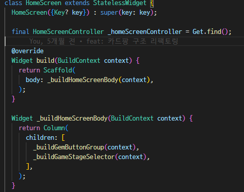 GetX는 손쉽게 상태관리는 제공하는데요. GetXController에서 상태로 관리할 변수들을 선언해주고, UI를 담당하고 있는 Widget에서는 변수들을 GetXController를 통해서 접근하고, Obx로 위젯을 묶어주기만 하면 됩니다! 복잡한 상태관리 코드없이 코드가 깔끔해진 모습입니다.