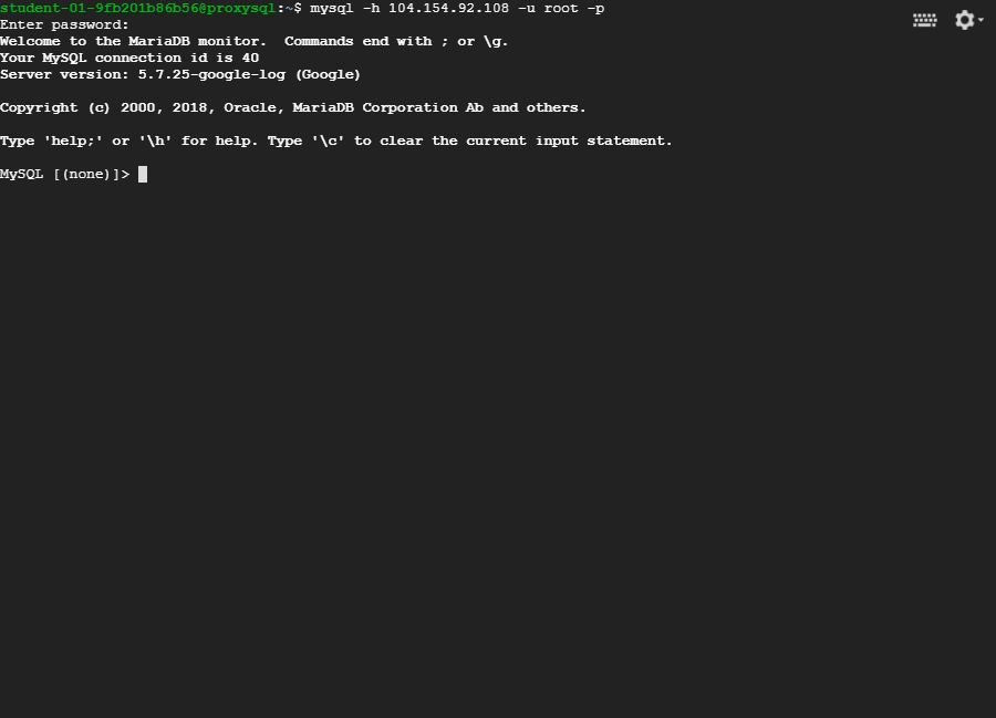 mysql -u admin -padmin -h 127.0.0.1 -P6032 --prompt='proxysql> '
